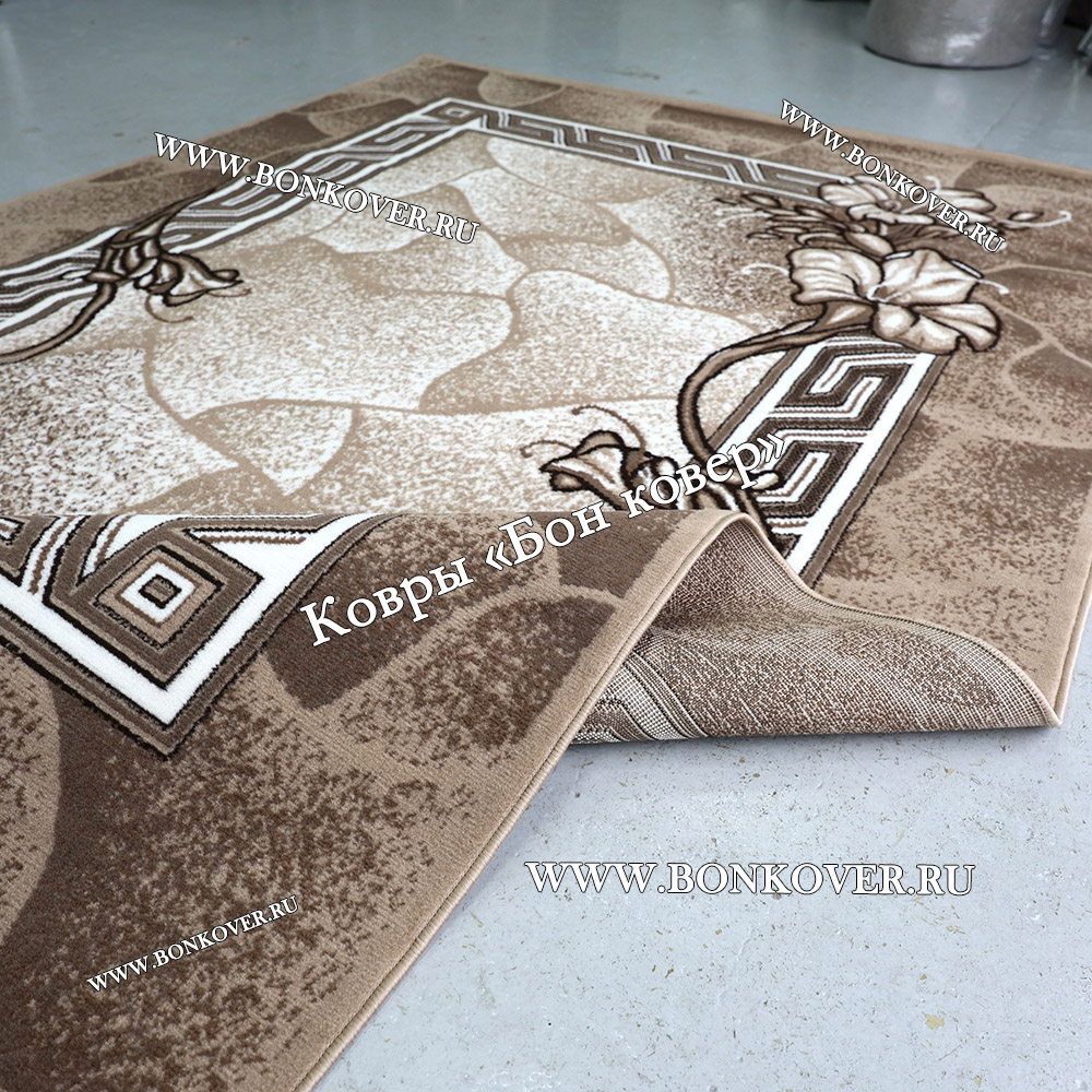 Ковер отличного качества. Ворс плотный, невысокий, приятный. Цветовая гамма подобрана очень стильно. Подойдёт к любому интерьеру. Размер чуть меньше заявленного ( 154х230). Упакован трубочкой . Доставили быстро.