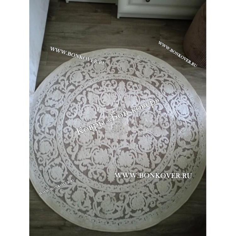 Круглый Белый Шелковистый Ковер Дизайн 30542 станет шикарным преображением вашей комнаты, подчеркивая высокий статус семьи владельца.