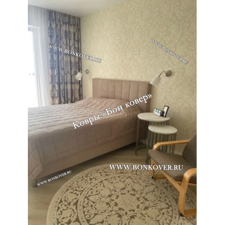 Шикарный Круглый Белый Шелковистый Ковер Дизайн 30542 наполняет интерьер гостиной теплом и уютом, гармонично сочетает в себе изящество и стиль. Он изготовлен из современных материалов, комфортный и долговечный.