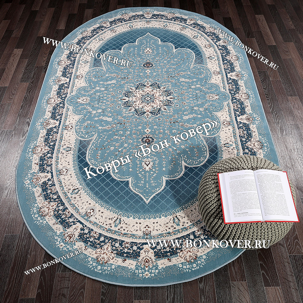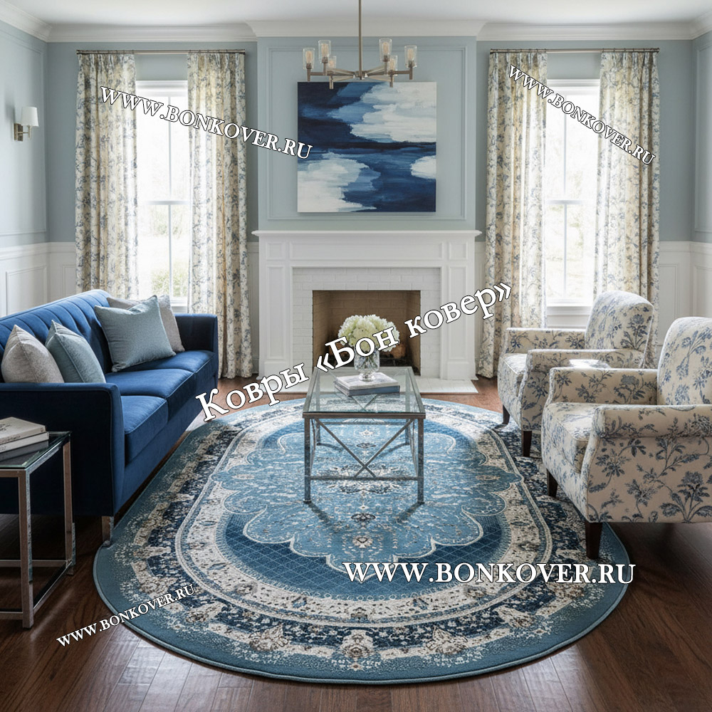 Турецкий Ковер Для гостиной New дизайн 380 Синий Овал станет великолепным преображением вашей комнаты, подчеркивая высокий статус владельца.